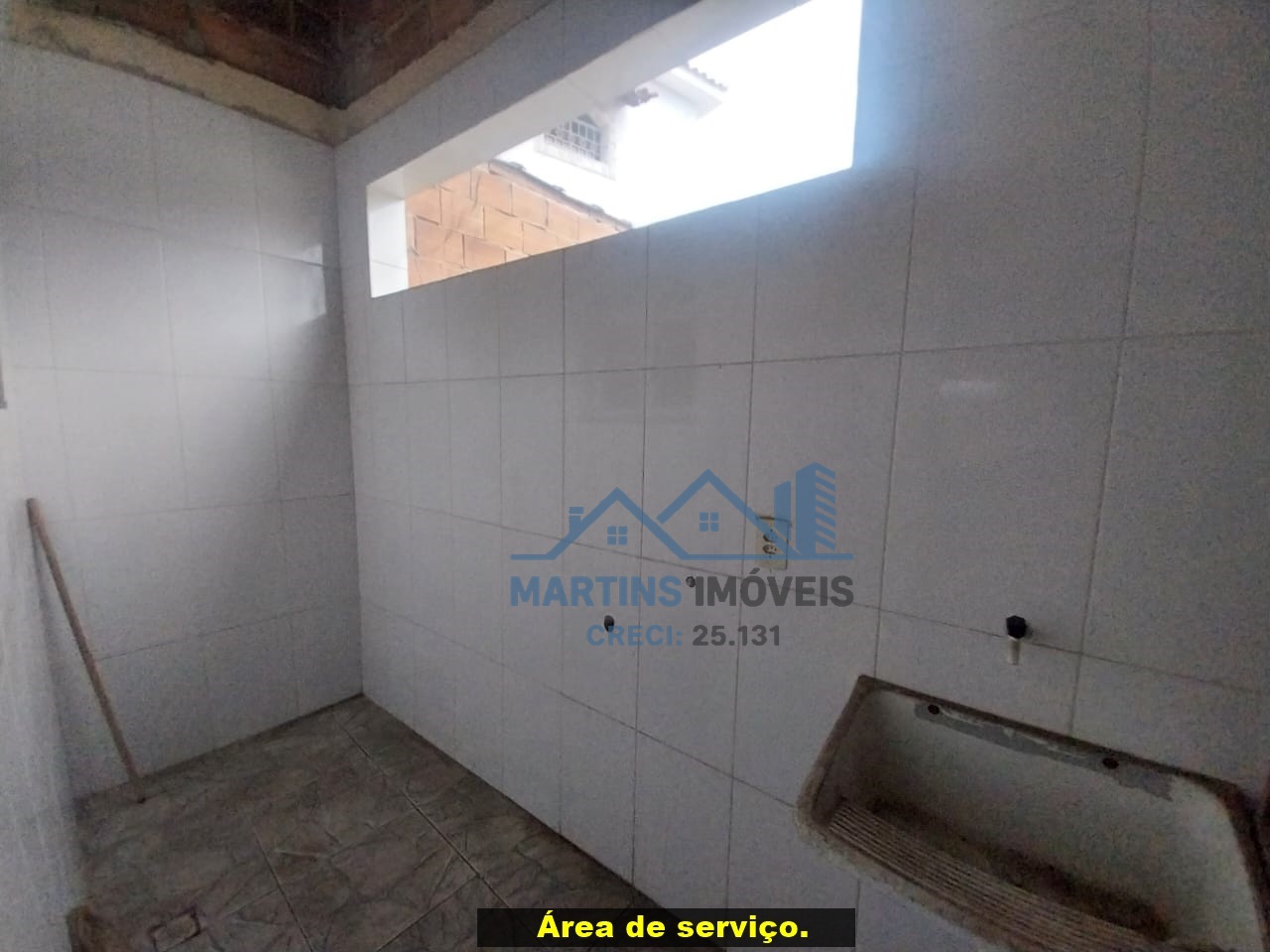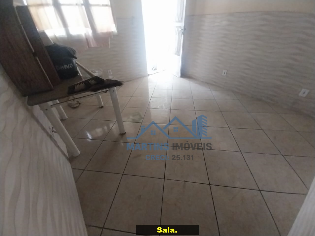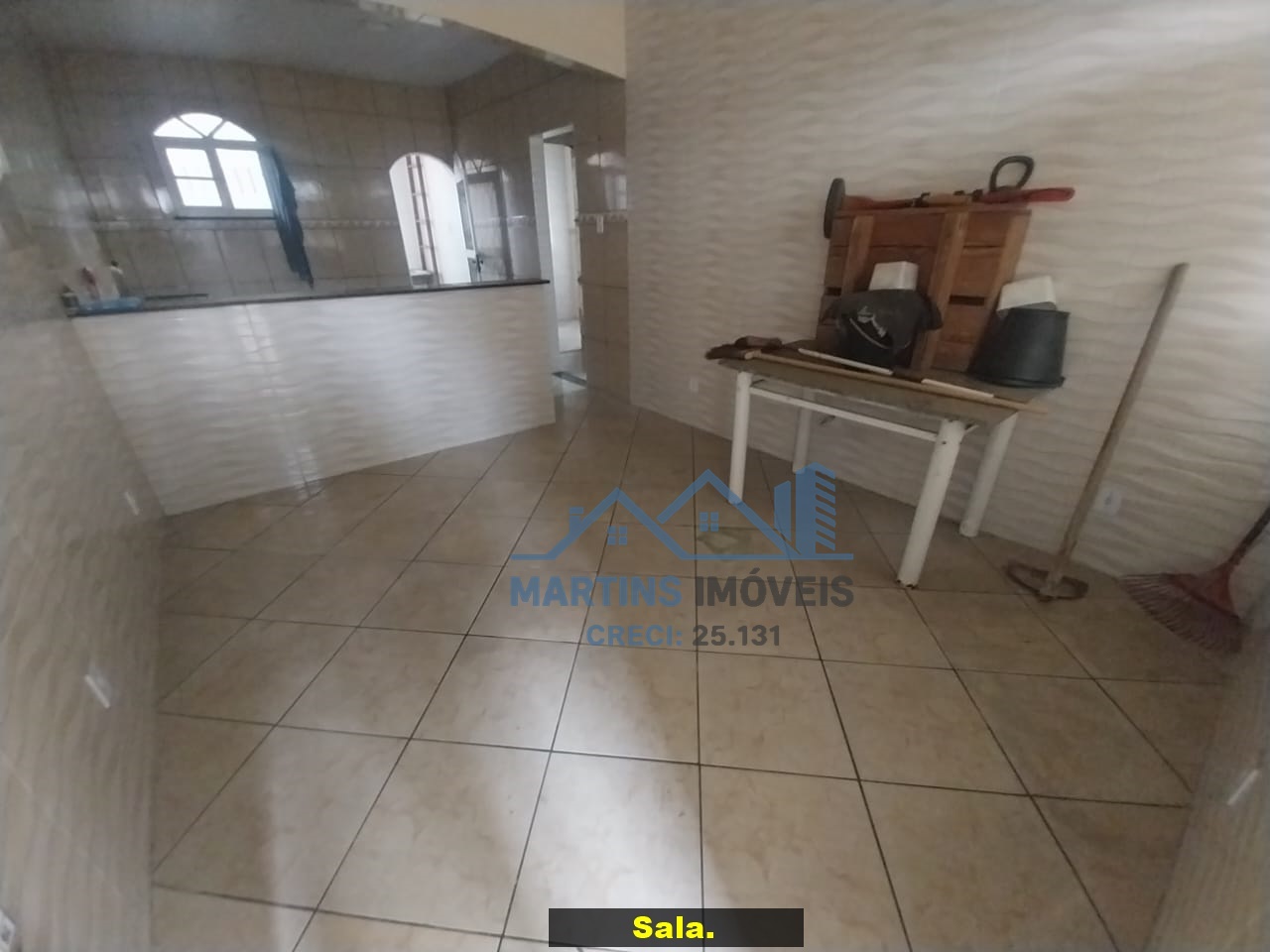 Casa da frente (principal): Varanda, sala, banheiro, cozinha, 2 quartos e área de serviço