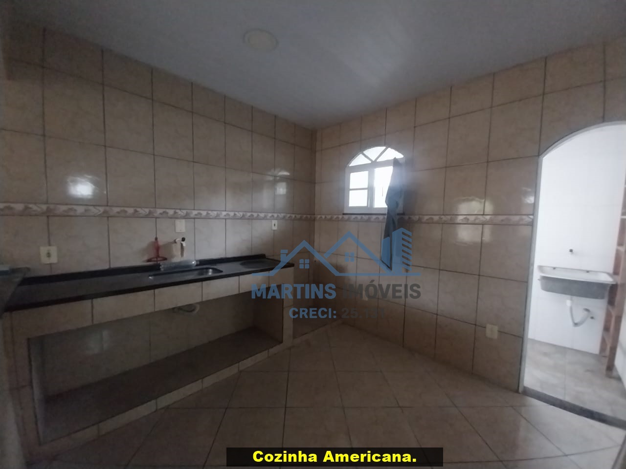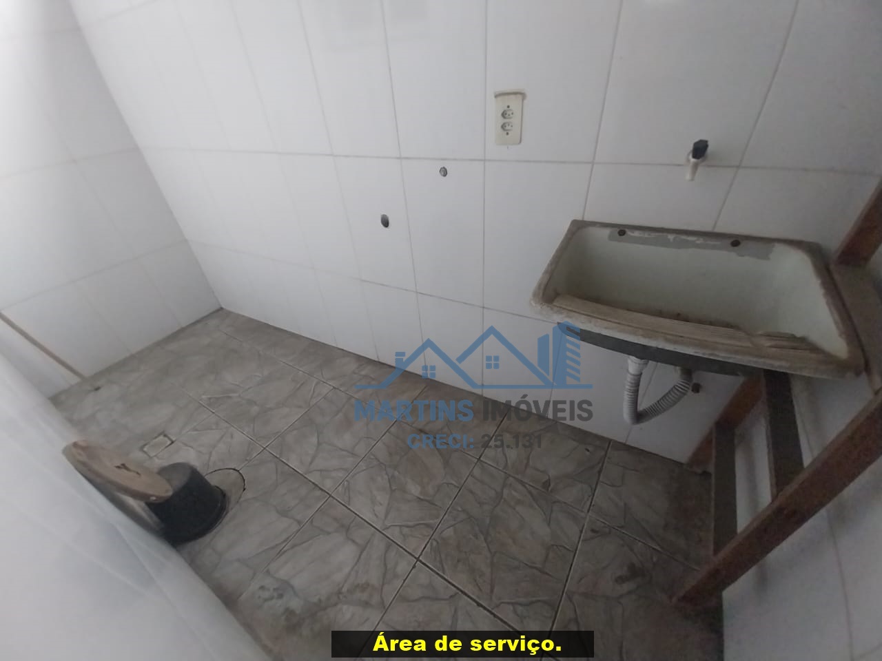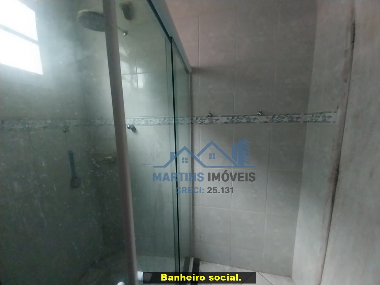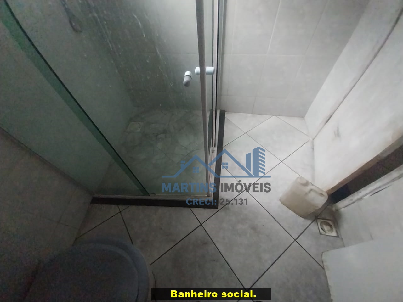 Casa da frente (principal): Varanda, sala, banheiro, cozinha, 2 quartos e área de serviço