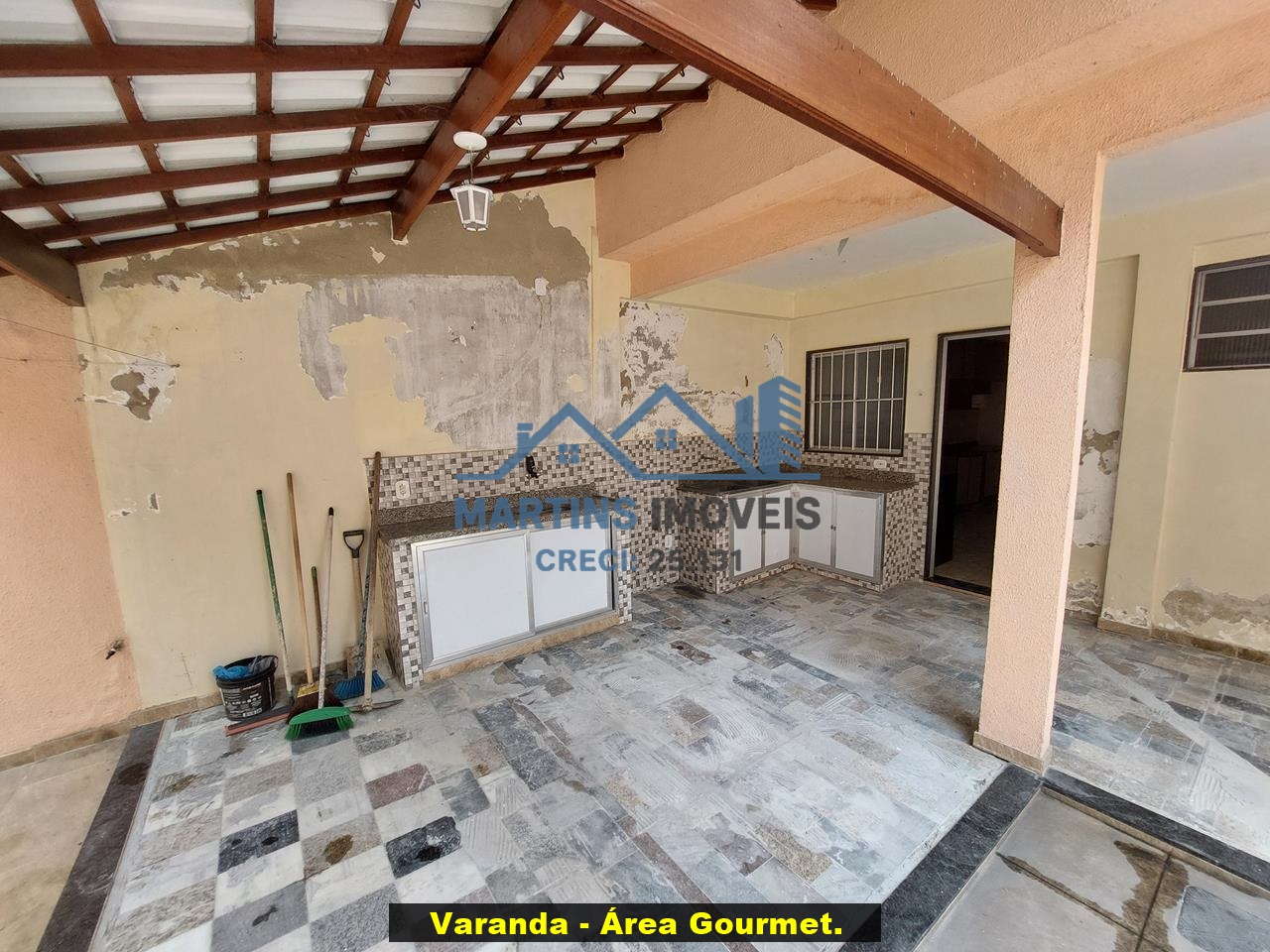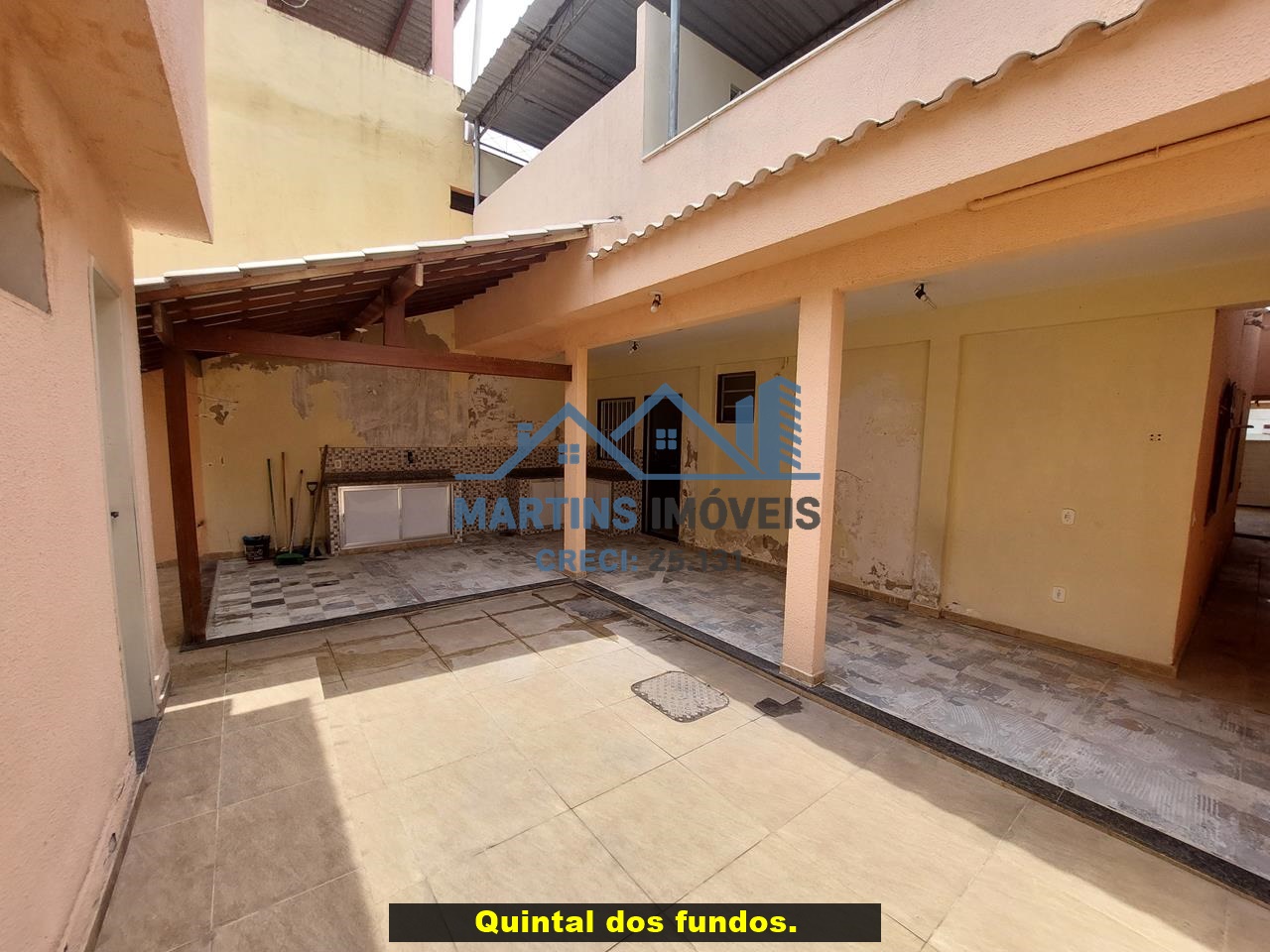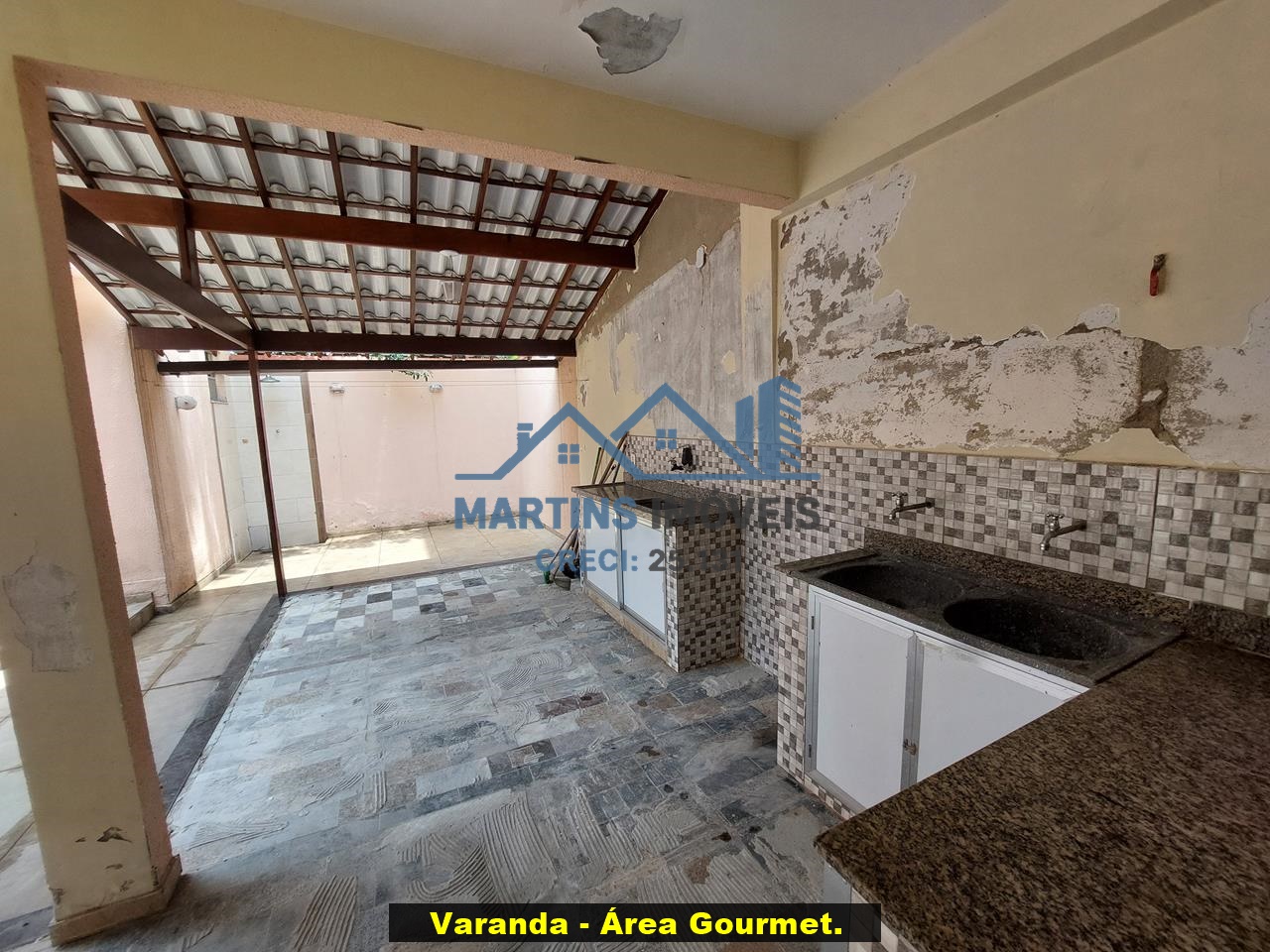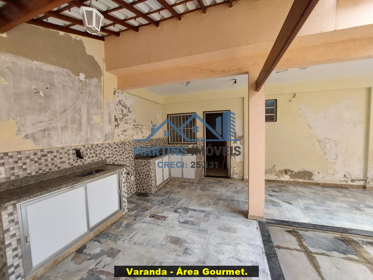 1º piso: Varanda com duas vagas cobertas, sala de estar, 3 quartos, banheiro social, ampla cozinha, quintal dos fundos com varandão, grande área gourmet e área de serviço.
