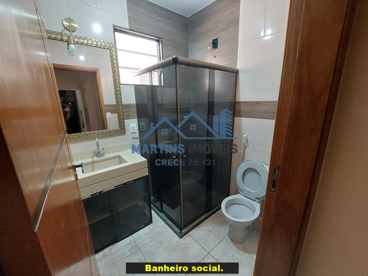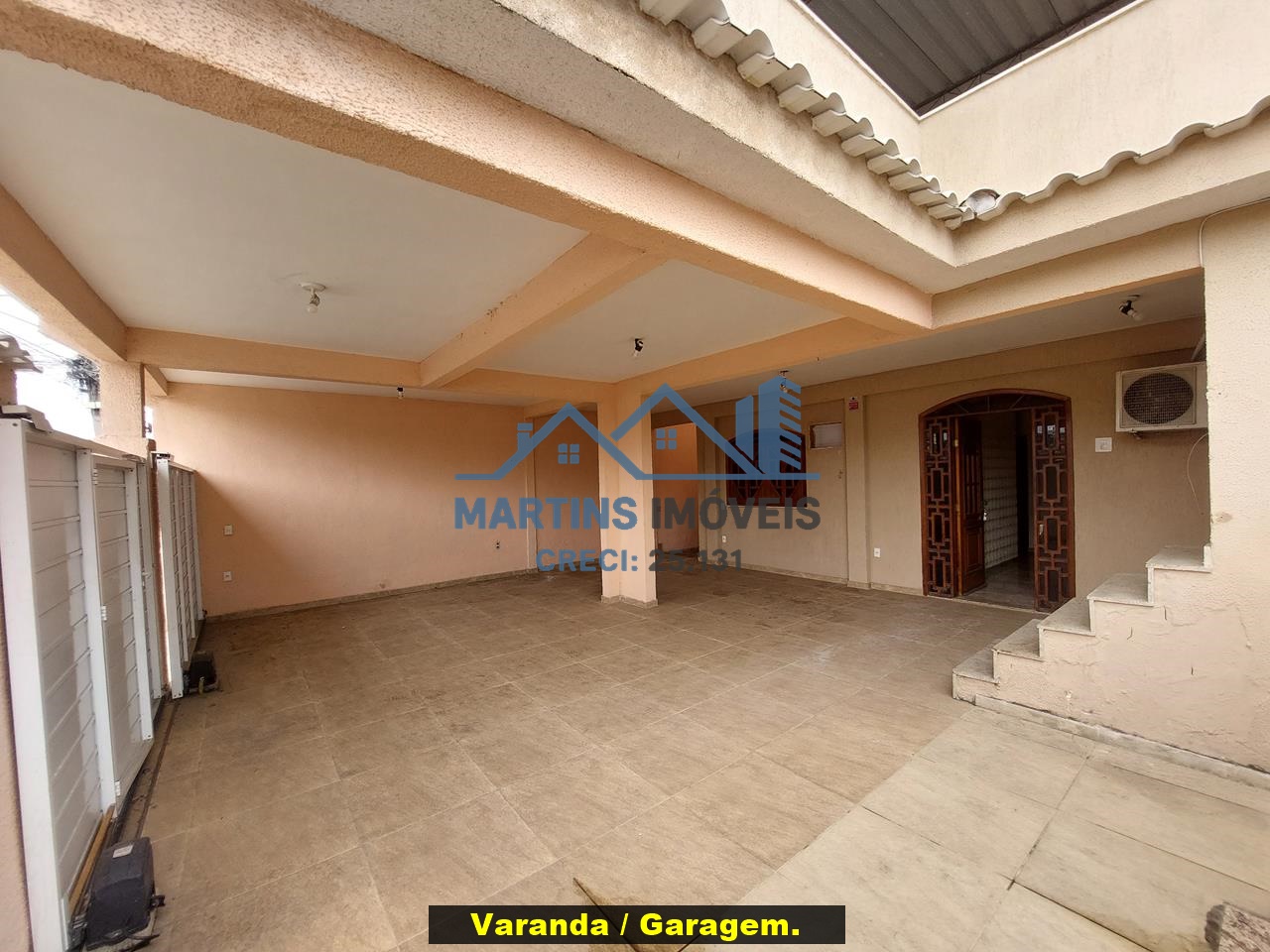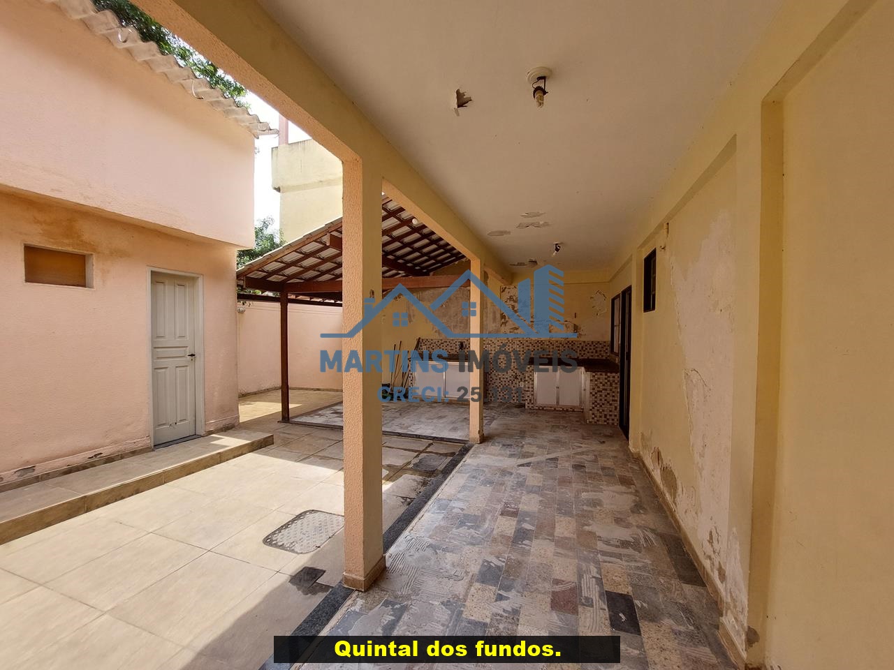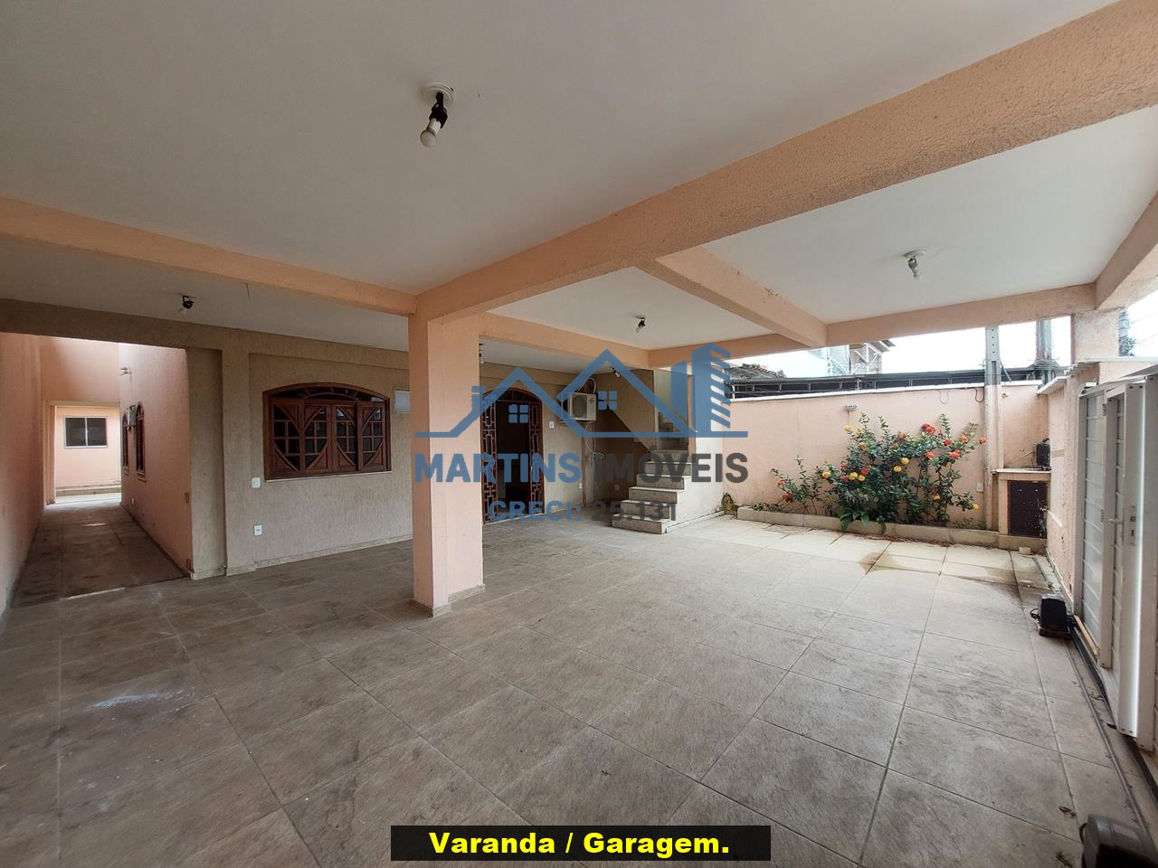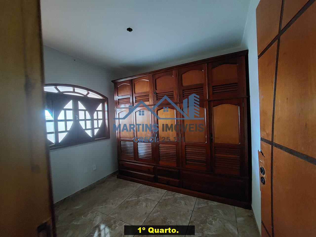 1º piso: Varanda com duas vagas cobertas, sala de estar, 3 quartos, banheiro social, ampla cozinha, quintal dos fundos com varandão, grande área gourmet e área de serviço.