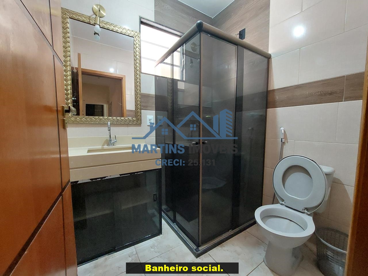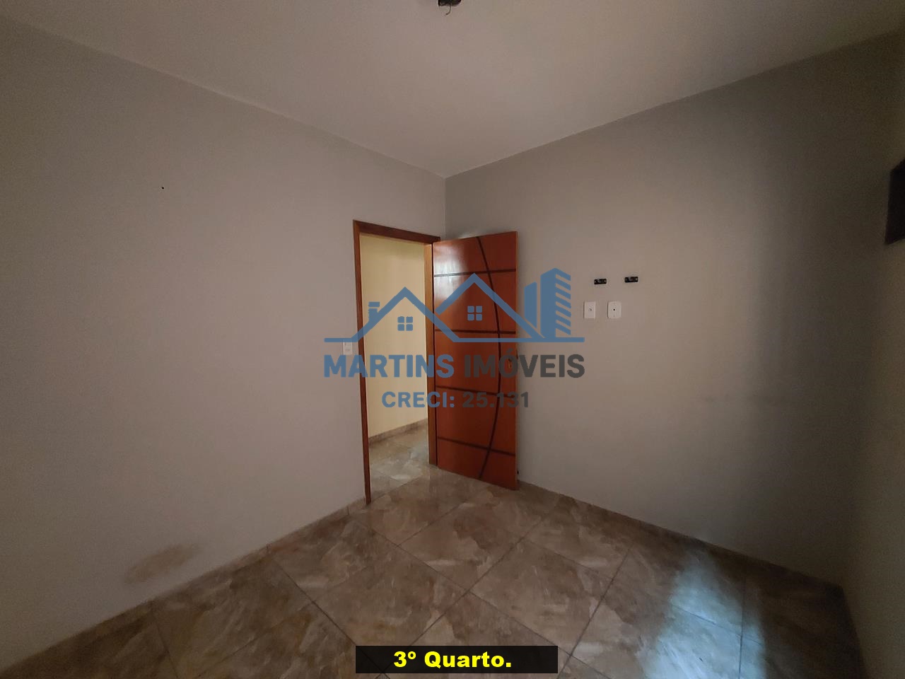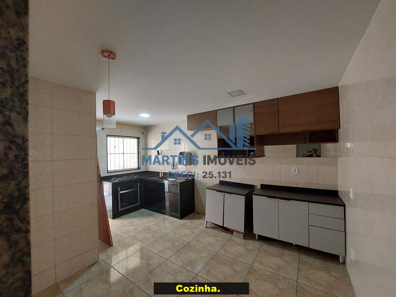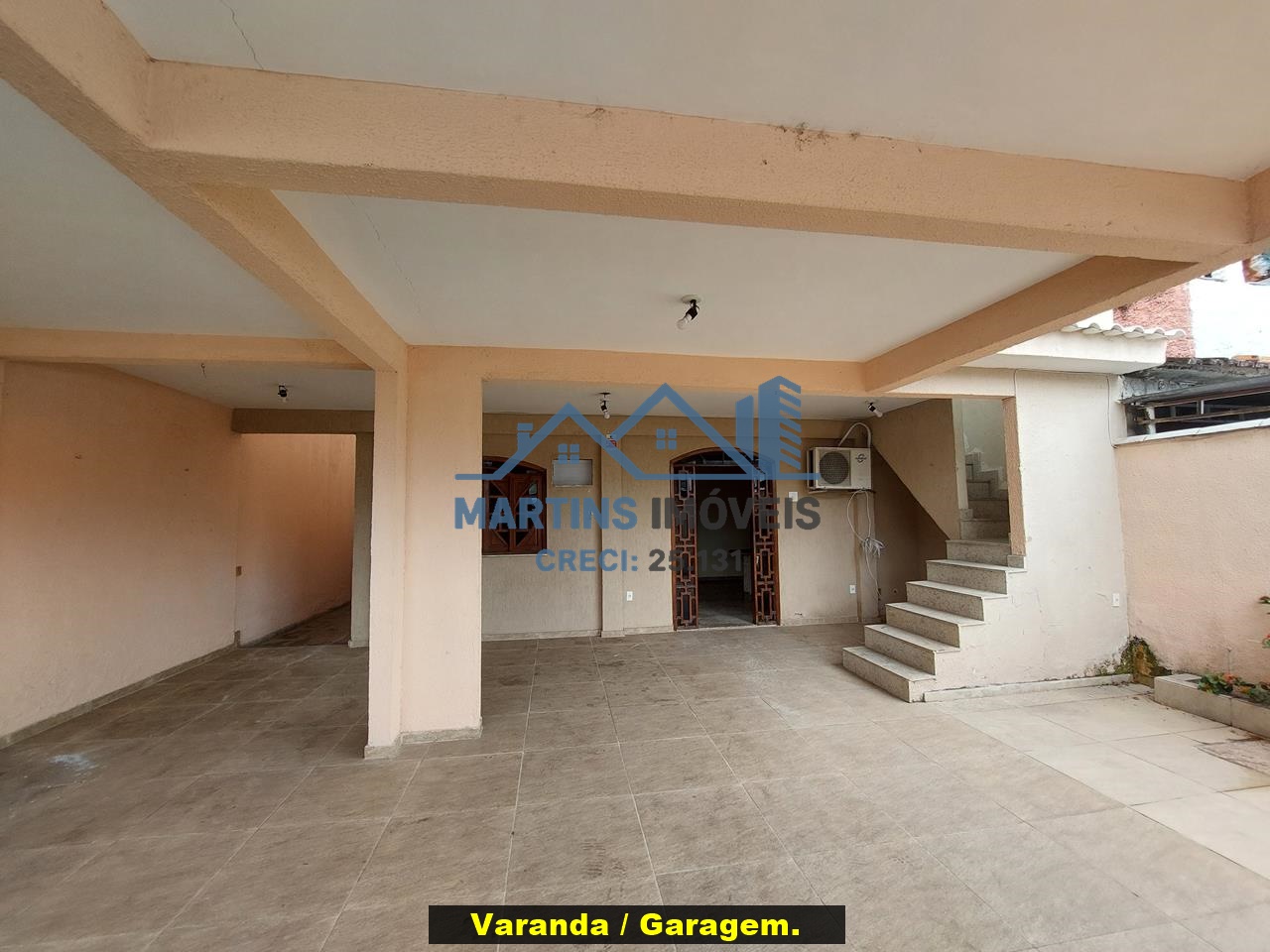 1º piso: Varanda com duas vagas cobertas, sala de estar, 3 quartos, banheiro social, ampla cozinha, quintal dos fundos com varandão, grande área gourmet e área de serviço.