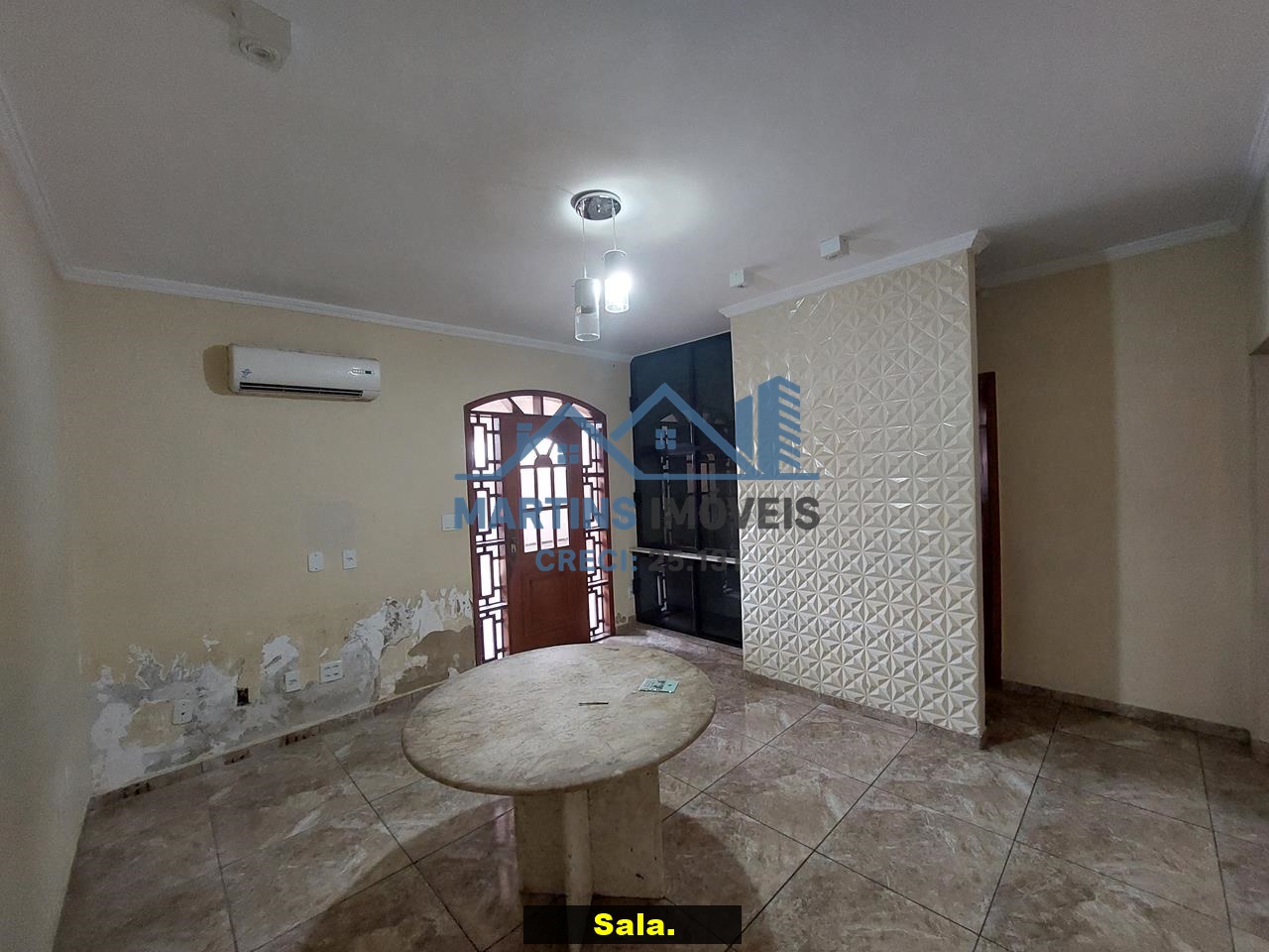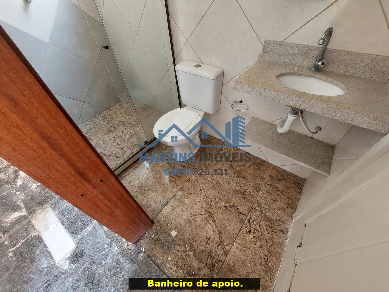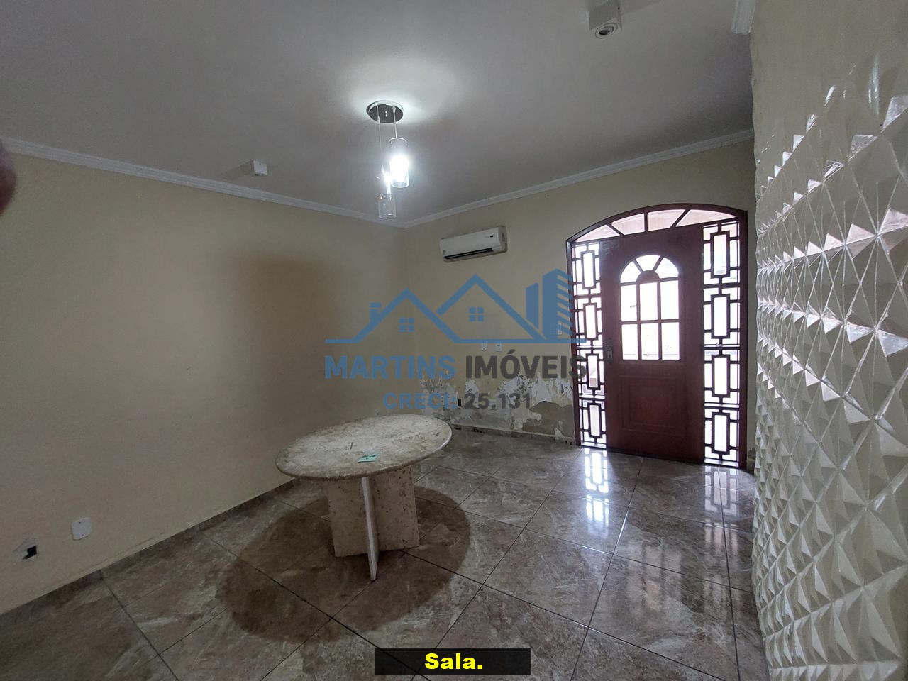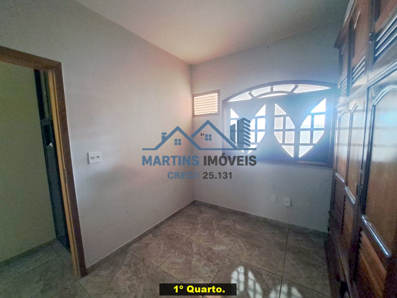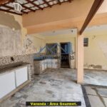 1º piso: Varanda com duas vagas cobertas, sala de estar, 3 quartos, banheiro social, ampla cozinha, quintal dos fundos com varandão, grande área gourmet e área de serviço.