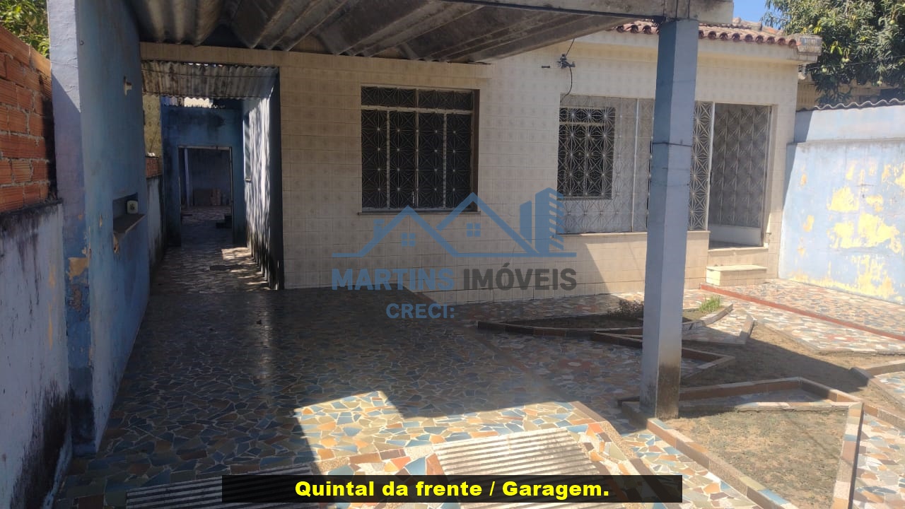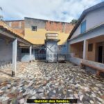 Quintal na frente com garagem coberta, quintal lateral direito, amplo quintal nos fundos com varanda e banheiro de apoio.