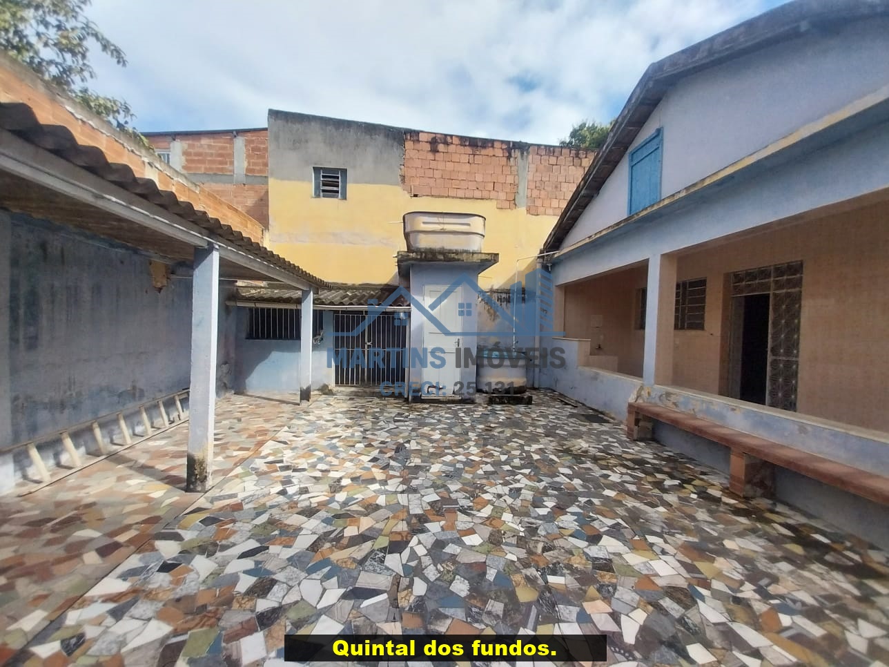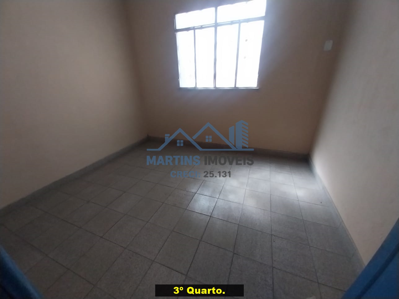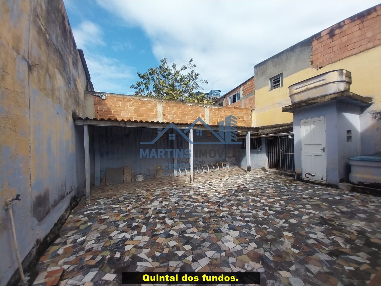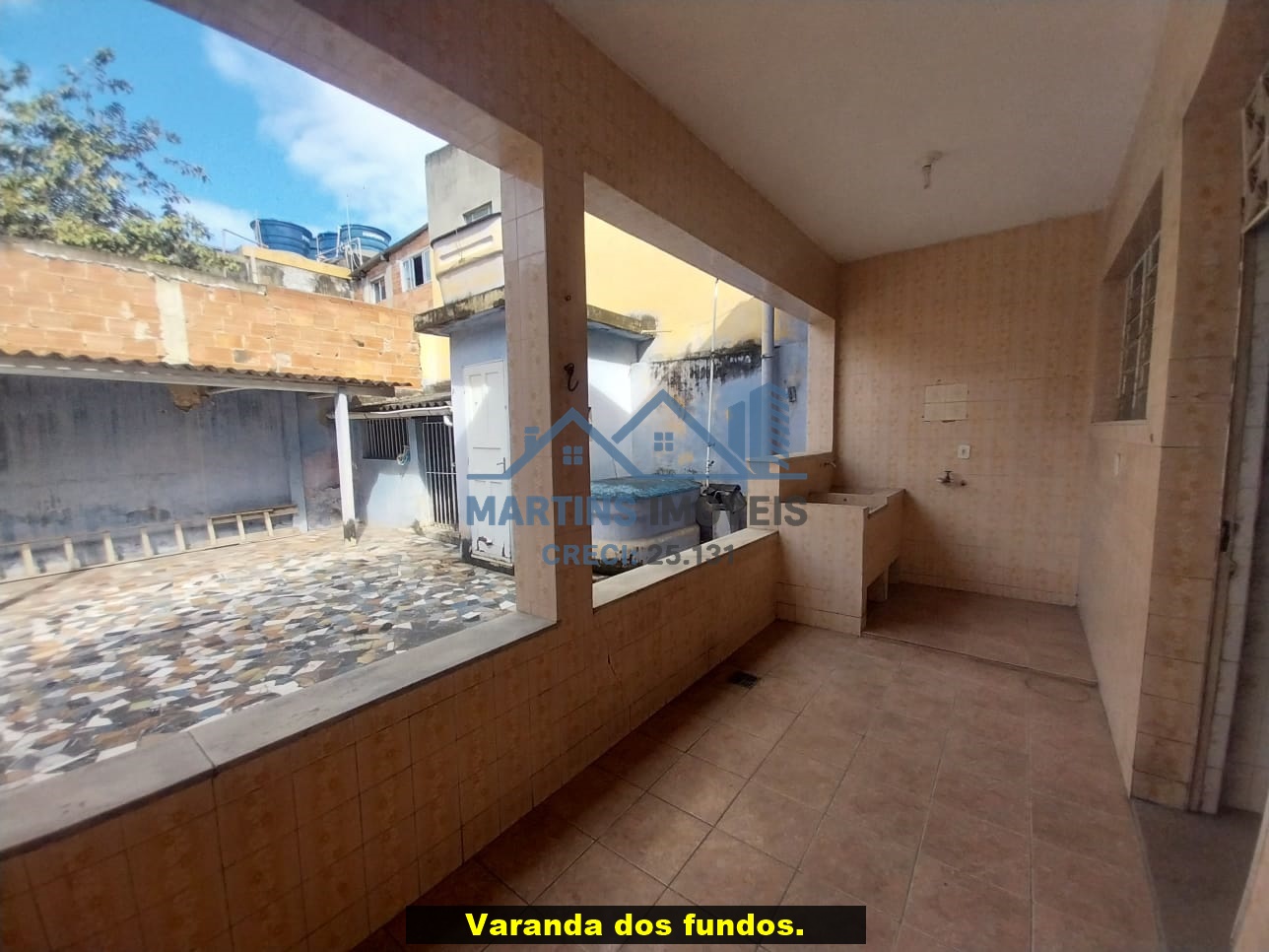Sala espaçosa alto, três quartos, ampla cozinha, banheiro social e área de serviço coberta.