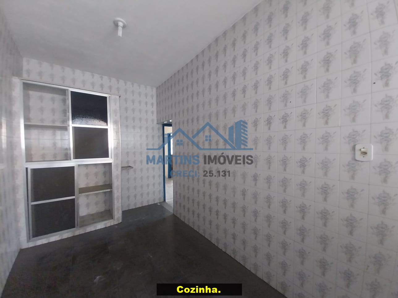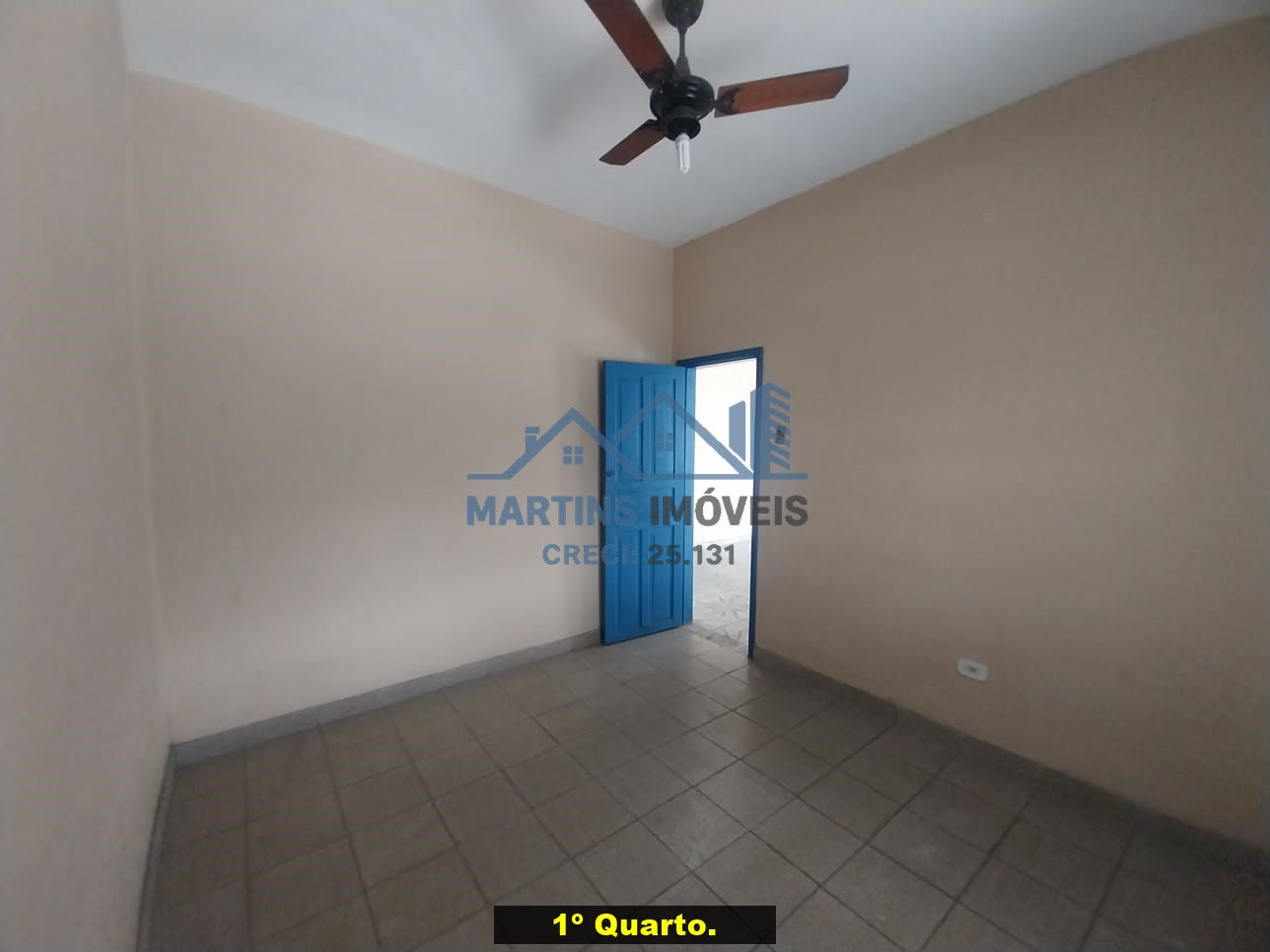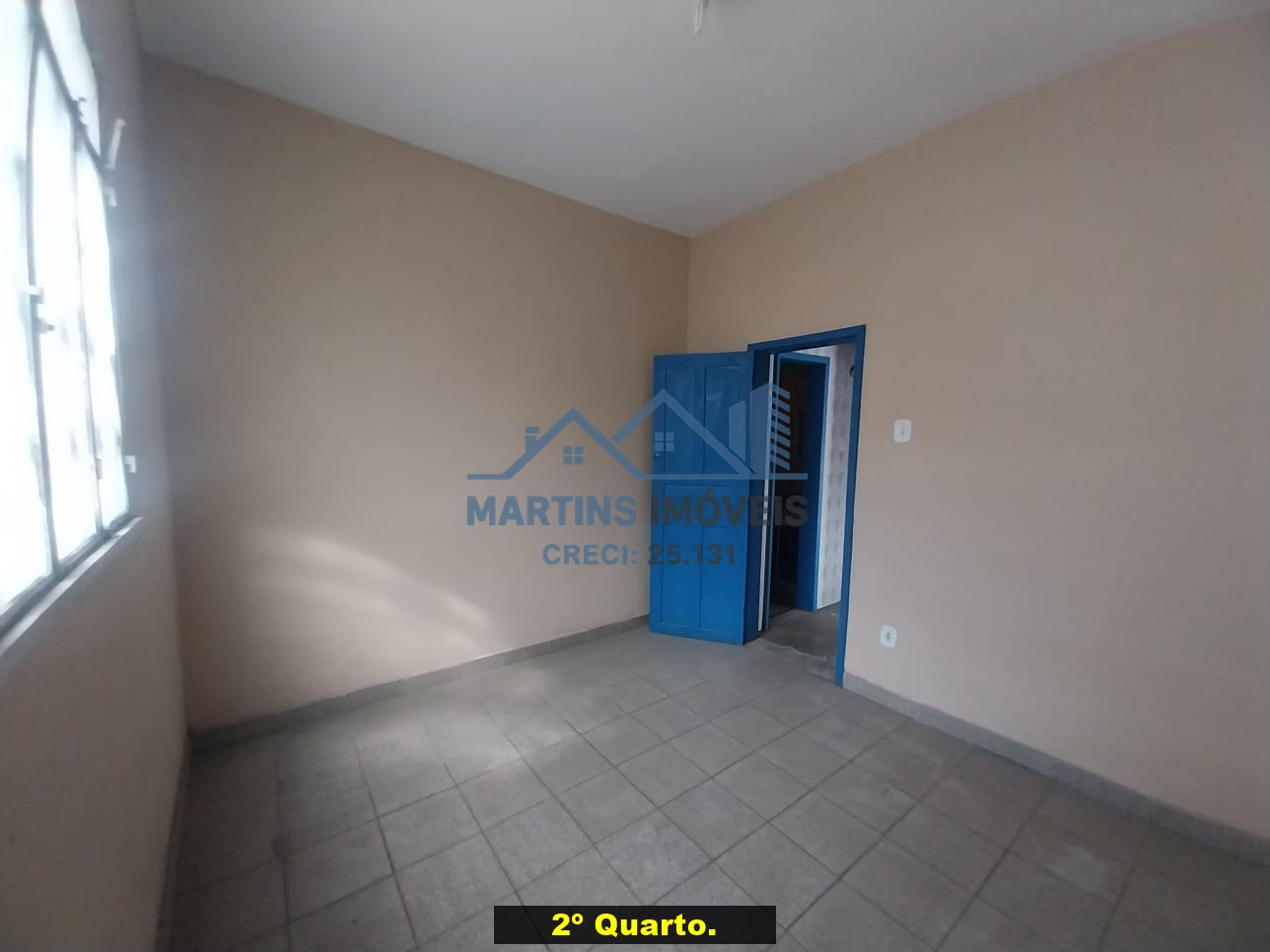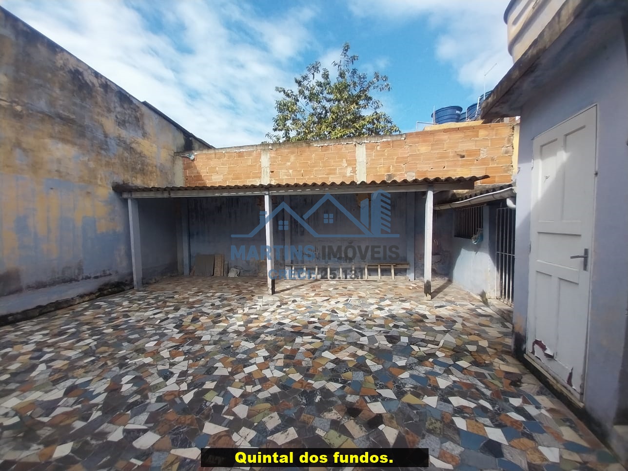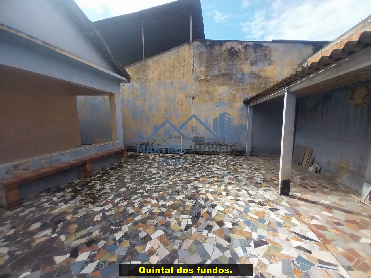 Sala espaçosa alto, três quartos, ampla cozinha, banheiro social e área de serviço coberta.