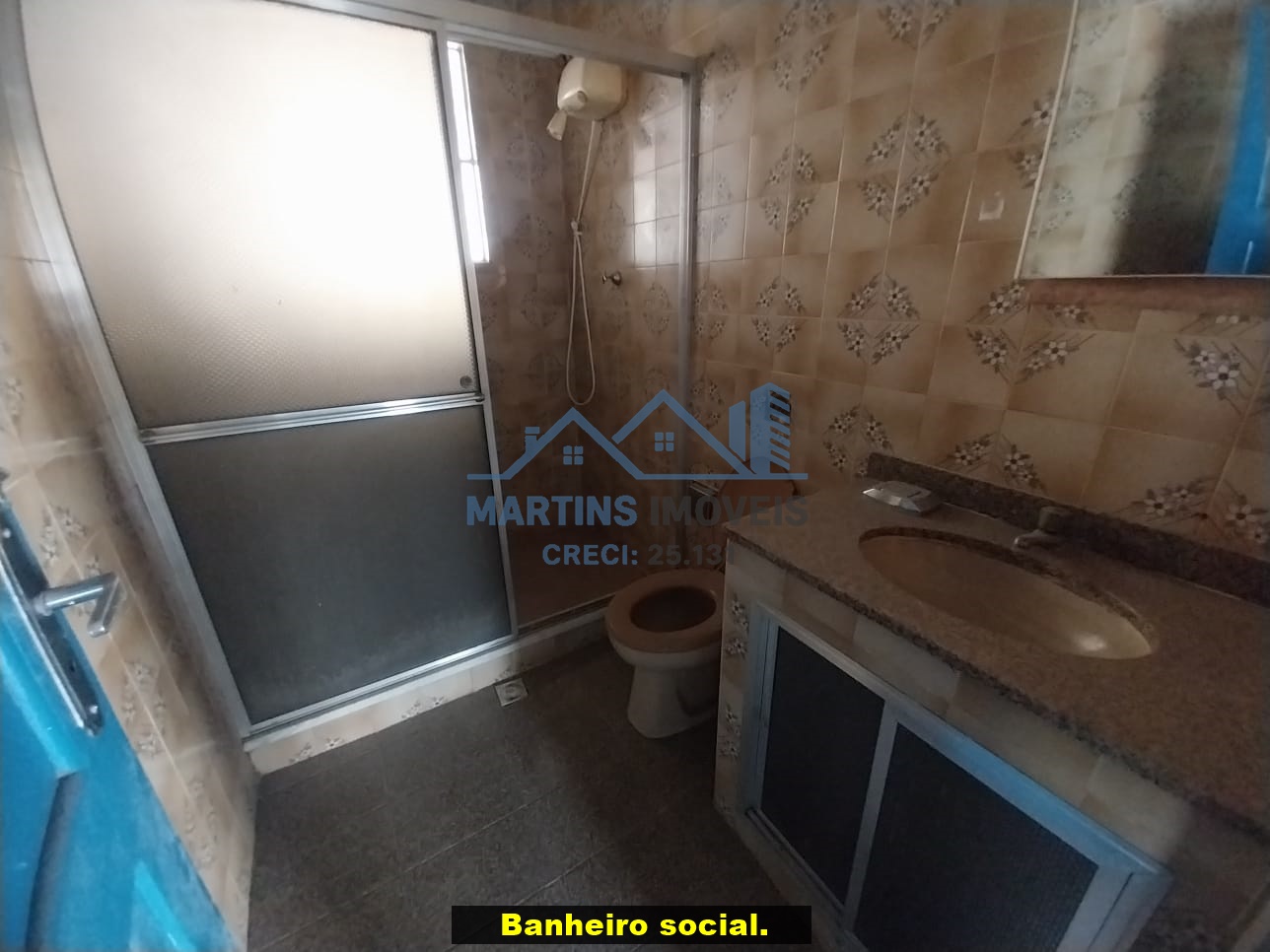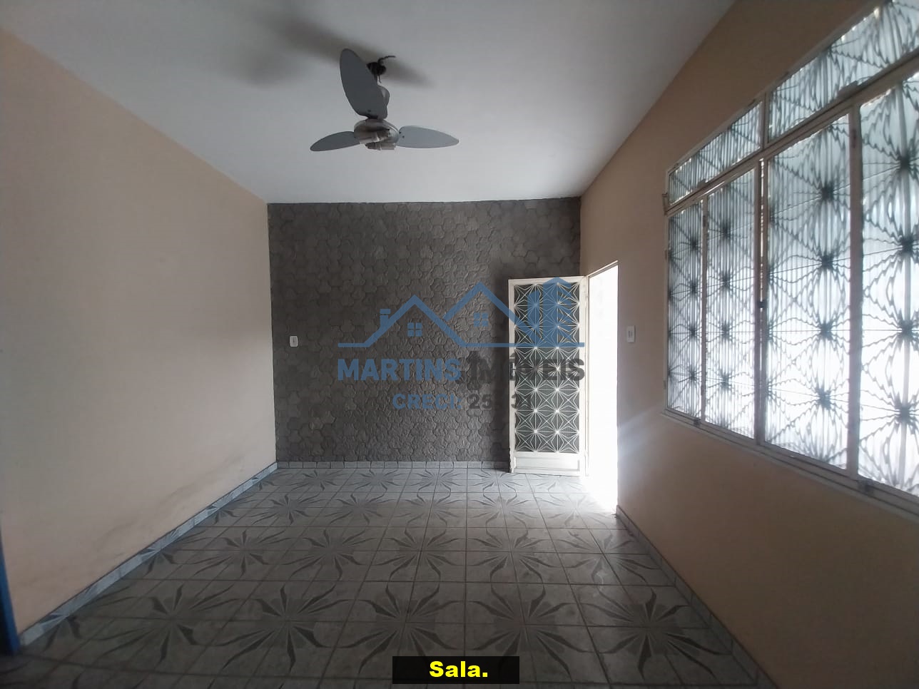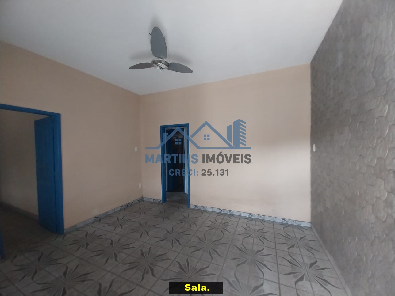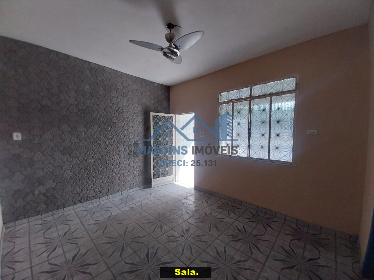Sala espaçosa alto, três quartos, ampla cozinha, banheiro social e área de serviço coberta.